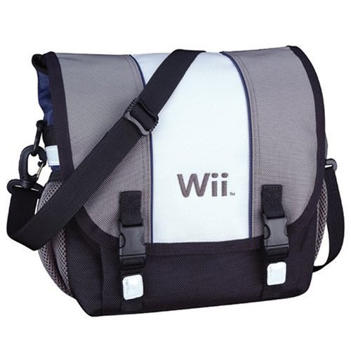 100% BRAND NEW and stylish & cool Nintendo Wii Messenger style bag.......It holds your game system and accessories in style.......The bag holds the Wii Console, Games, Wii Remote, Nunchuck, Wii Sensor Bar and AC adapter. Main pocket holds Wii console.......Padded middle pocket holds AC adapter and Controllers........Zippered padded inside pocket for Sensor Bar......Front pocket holds games and additional Controllers.......Made of premium quality soft rugged and high-class material.....High quality extra-strength stich throughout....Thick padded inside pockets to protect your WII against damage.....Light and easy to carry with included detachable premium quality shoulder belt....Wii engraved on the bag, as shown in picture